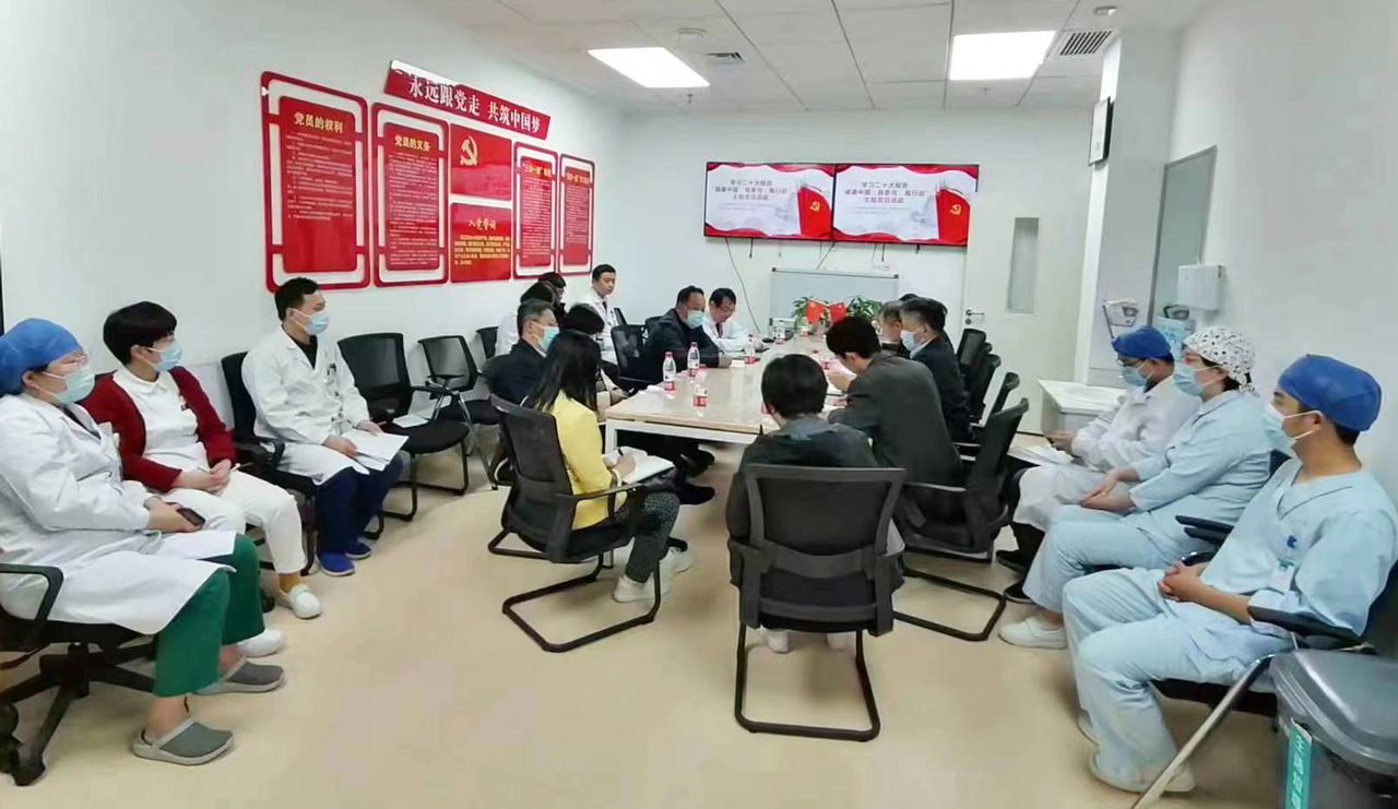 吕军和张爱国进行总结发言。吕军表示,党的二十大报告“人民”出现105次,报告把“必须坚持人民至上”摆在“把握好新时代中国特色社会主义思想的世界观和方法论,坚持好、运用好贯穿其中的立场观点方法”的“六个坚持”的第一位。作为医护工作者就应该恪守为人民群众身心健康服务这一医德要求,以保障人民健康为工作出发点和落脚点,改善医疗服务,强化人文关怀,努力构建和谐医患关系。张爱国表示,临床一线党员与学校教师党员联合开展主题党日活动是一次创新,通过本次活动,党员同志们进一步深化了对新时代党的伟大事业的理解和认识,更加坚定了以昂扬的姿态投身健康中国事业的决心。希望两个支部以学习贯彻党的二十大精神为契机,在党务、科研、教学诸方面加强合作与交流,探索合作机制,建设友好合作党支部,为医学人才培养、为健康中国做出积极贡献。