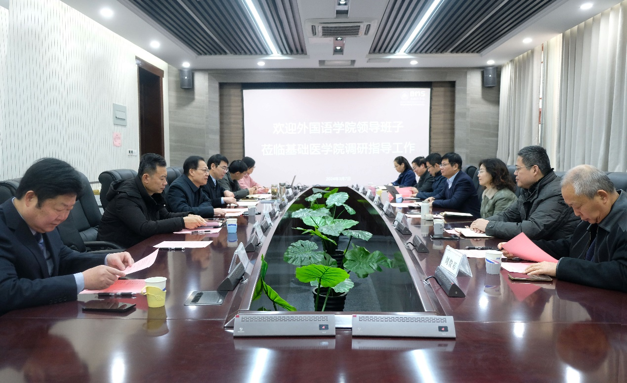 3月6日,外国语学院党委书记刘华、院长马文等全体领导班子成员到万象城awc官网登录入口调研座谈。万象城awc官网登录入口党委书记马宏峰、院长高成江等领导班子成员以及国家“特支计划”教学名师刘树伟教授参加座谈交流。