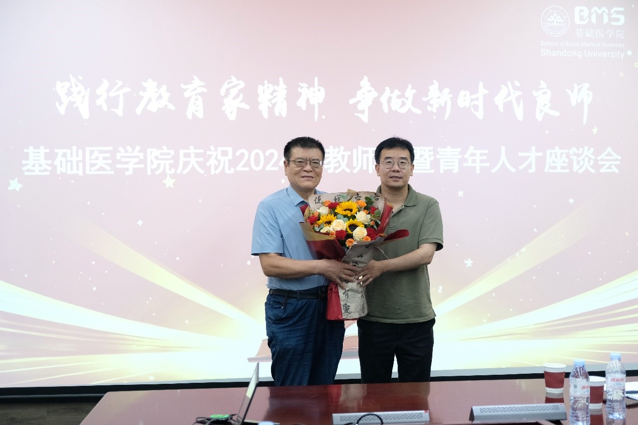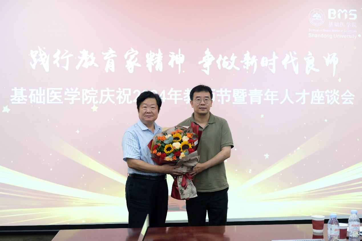 易凡充分肯定了各位优秀教师代表在学校教育事业发展中付出的辛勤劳动和作出的突出贡献,对三位老教授表示感谢并送上鲜花,向全院教师致以节日祝贺和亲切问候。他指出,近年来,齐鲁医学紧紧围绕高质量发展,坚定不移地推动融合创新,在人才培养、科学研究、师资队伍等方面取得了一系列引人瞩目的成绩。着眼未来发展,万象城awc官网登录入口要站在更高格局和视野加强顶层设计与谋划,充分发挥好基础医学的优势,努力实现更大的突破。