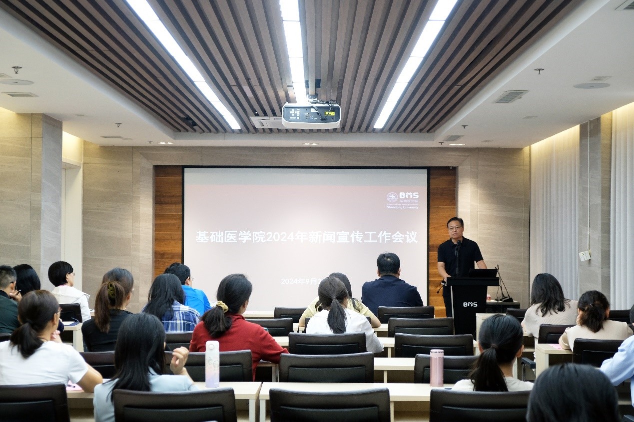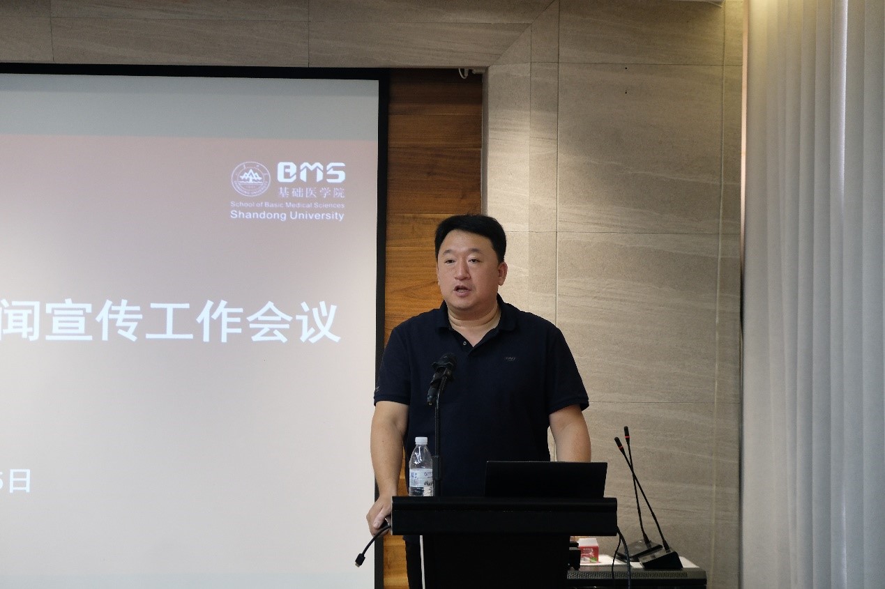 马宏峰作总结讲话。他表示学院一直以来高度重视宣传工作,大力推进宣传队伍建设、定期组织培训、加强网站管理、严格“三审三校”、优化宣传工作考核和奖励办法等工作,围绕学院中心工作,加大对学院的正面宣传,聚力构建大宣传格局。就下一步做好宣传工作提出三点建议:一是全院上下要提升政治站位,牢固树立“人人都是宣传员”的责任意识,发挥好医学专业的特色,主动宣传,讲好学院故事;二是端正态度,强化宣传工作的主体意识,进一步加大学院各类新闻的挖掘和凝练,优化升级学院宣传工作。三是提升宣传业务能力,开拓多级宣传渠道,打造优质宣传内容,稳步提升学院宣传工作的传播力和影响力。