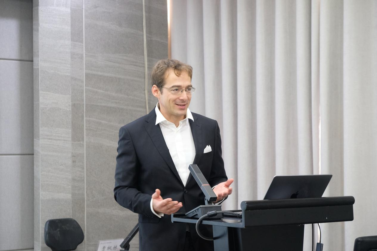 马春红为Alexey Amunts教授颁发聘书。Alexey Amunts教授与在场人员分享了自己的家庭、人生阅历、学习和科研历程,表示今后将继续加强交流合作,共同推进医学事业的进步。