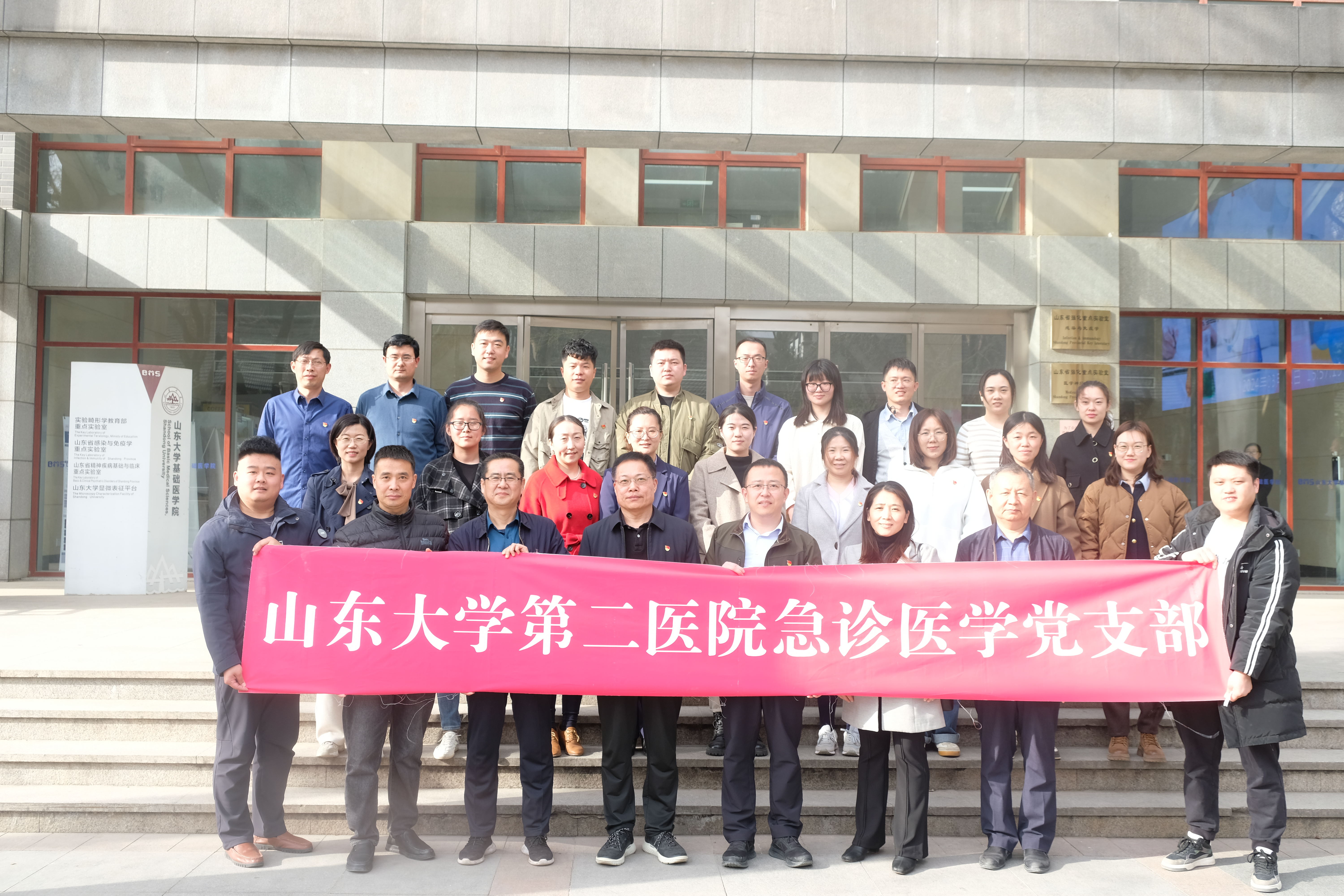 3月21日下午,万象城awc官网登录入口机关党支部联合山大二院急诊医学党支部开展“同心·共建”主题党日活动。学院党委书记马宏峰等领导班子成员、万象城awc官网登录入口第二医院急诊医学中心党支部书记宫宁基等近40人参加本次活动。