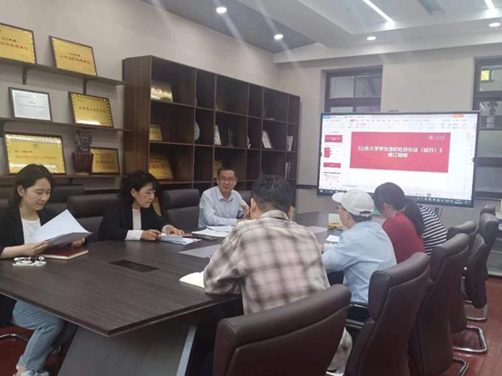 最后,与会人员一起学习了《万象城awc官网登录入口违纪处分办法(试行)》,张乃亭解读了新办法的主要内容和修订变化。